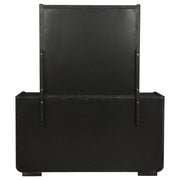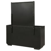 Grounded in grace and softened by design, this eight-drawer dresser and mirror set brings balance to the bedroom with understated elegance. Cloaked in a burnished black finish, the frame curves subtly at the edges for a sculptural feel. Spacious drawers open with quiet ease thanks to soft-closing glides, while black felt lining in the top drawers offers protection for delicate essentials. Above, a minimalist mirror completes the silhouette, reflecting form and light in quiet harmony. Key Features: • Eight-drawer dresser in burnished black with curved edges and minimalist structure • Top drawers lined in black felt to protect accessories and delicate items • Soft-closing ball bearing glides provide quiet, smooth drawer movement • English dovetail drawer joinery ensures lasting strength and clean craftsmanship • Dust panel construction keeps stored contents clean and well protected • Paired with matching mirror for a clean-lined, elevated bedroom silhouette