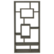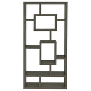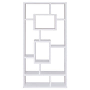 Put your most cherished memories on proud display. This bold bookcase features ten shelves of various sizes to show off your favorite keepsakes. With expert craftsmanship and high-quality materials, it provides safe, sturdy storage. Its cool, contemporary silhouette adds artsy appeal to a room with its striking, geometric shapes. This bookcase is available in white, cappuccino, or weathered grey for a variety of options to fit any decor. Key Features: • Geometric ten-shelf bookcase in white for modern display and organization • Asymmetrical shelving accommodates books, art, and everyday items • Engineered wood core with scratch-resistant laminate veneer • Vertical structure maximizes display while conserving floor space • White finish offers a versatile base for color styling or neutral tones • Includes tip-over restraint hardware for safe wall mounting