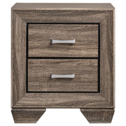 Crafted for durability, this four-piece bedroom set is a practical choice. It features a lovely, transitional design that blends seamlessly with a variety of home decor styles. Bold, black recessed grooves stand out strikingly against its subtle, washed taupe finish. Natural oak wood grain raised on engineered wood adds an effortless touch of glamour. Rounded out with picture framed case fronts and ample drawer space, this set exudes quality, class, and convenience. Key Features: • Bedroom set with panel bed and bold rectangular framing throughout • Washed taupe finish features a warm wood grain look with black recessed grooves • All case pieces include picture frame drawer fronts for added visual depth • Antique brass handles add contrast and easy access to storage compartments • Smooth-operating drawers use Kenlin glides for durability and functionality • Built from engineered wood, scratch-resistant laminate, and sturdy composite materials