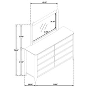 Introduce the earthy character of beautiful walnut with this transitional eight-drawer dresser and mirror combination. It delivers plenty of space for clothing and accessories, with a wide top for decor and personal items. The mirror adds lightness and reflectivity, complete with a wooden frame and beveled glass for a refined look. The dresser boasts a walnut veneer finish, adding the character of wood grain details to your bedroom. Drawers include felt lining in the two top, with cedar that adds protection against pests. Key Features: • Enhance your bedroom with the handsome profile and storage of an eight-drawer dresser and mirror • Dresser and mirror frame feature rounded corners and glass is beveled for depth • Walnut wood veneer lends warmth and creates a touch of texture with natural grain patterns • Top drawers are complete with dark brown felt lining, offering easy protection for delicate items • Drawers feature cedar lining that helps to protect against pests and provides excellent quality