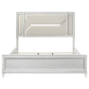 Indulge in the luxurious elegance of this modern Italian-designed bed, perfect for creating the opulent bedroom you deserve. The striking, clean lines and picture framed recessed panels with embossed herringbone graphic patterns exude sophistication. Accented with mirror framing and acrylic legs, the bed also features polished chrome metal hardware and touch LED lights in the 3-dimensional headboard, upholstered in off-white boucle fabric. Crafted from rubberwood, MDF, foam, and mirror, this bed offers both style and durability. Available in queen, eastern king, and California king sizes to suit your preferences. Key Features: • Queen bed with 3-dimensional headboard upholstered in off-white boucle fabric • Modern Italian design with clean lines and opulent aesthetics • Picture framed recessed panels with embossed herringbone graphic patterns • Mirror framing and acrylic legs with polished chrome metal hardware • Touch LED lights in the headboard provide added convenience and a modern touch to your bedroom
