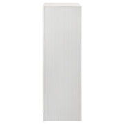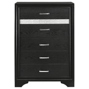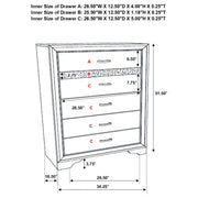 Add posh, upscale ambiance to your bedroom decor. This chic, stylish chest livens up a room with a dazzling touch of sparkle. With a hidden jewelry drawer built in, it keeps valuable items safe and secure. Its drawers are lined with felt for a luxurious hint of softness. Its six convenient drawers are built with metal extension glides for versatile ease of use. Key Features: • Six spacious drawers offer practical vertical storage • Hidden felt-lined drawer concealed behind glitter accent • Crystal drawer pulls bring added shimmer and texture • White finish with subtle side panel texture • Metal-extension drawer glides for everyday ease • Engineered wood frame with laminate veneer surfaces