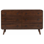 Keep your space neat and organized with this sleek mid-century modern dresser, built with pine, engineered wood, and walnut veneer for durability. ...