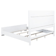 View full detailsThis bedroom set combines soft curvature and linear polish in a clean modern silhouette. Each piece features elongated brushed nickel pulls and sub...