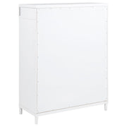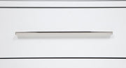 View full detailsThis three-drawer nightstand blends subtle curves with thoughtful convenience. Vertical metal accents and brushed nickel pulls contrast a white fin...