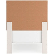 With its clean-lined look and modern attitude, this queen panel bed is a fresh style awakening. A crisp, white hue over subtle replicated wood grain easily complements other furniture finishes. The simple, unadorned profile is given depth and dimension with the addition of plank-style moulding on the headboard—proof that beauty lies in the details.