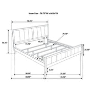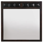 Create a refined retreat with this transitional bedroom set, pairing modern simplicity with timeless craftsmanship. The bed features channel-stitched black leatherette panels framed in a warm cappuccino finish, complemented by clean-lined storage pieces with brushed silver hardware. Each component is crafted from solid wood, veneer, and engineered wood for enduring strength. Blending style and function, this coordinated suite transforms the bedroom into a space of comfort and sophistication._x005F_x000D_ Key Features: • Four-piece bedroom set in cappuccino finish with cohesive design • Bed features black leatherette panels with vertical stitching • Nightstand and dresser offer generous drawer capacity • Mirror’s leatherette trim ties the collection together visually • Constructed from rubberwood, veneer, and engineered wood • Metal hardware creates contrast and ease of use