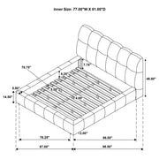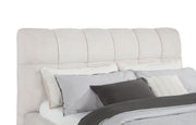 Tailored with bold lines and soft texture, this upholstered platform bed blends comfort with quiet strength. Vertical channel tufting runs along the headboard and foot rails, adding dimension and rhythm to the silhouette. Wrapped in plush fabric and fully slatted for support, it eliminates the need for a foundation. Crafted from solid and engineered wood, this bed invites modern serenity into any bedroom retreat. Key Features: • Queen platform bed with vertical tufting for subtle texture and visual rhythm • Cream fabric upholstery adds soft elegance with a light, airy modern palette • Slatted platform design supports mattress without needing a foundation • High headboard offers sculptural depth and a softly framed silhouette • Crafted from solid pine, engineered wood, and foam for strength and support • Perfect for minimalist or contemporary rooms with light, calming tones