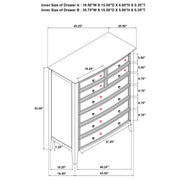 Create ample storage in your stylish bedroom with a modern eight-drawer chest. Its coastal style is established with a cool white finish paired with natural rattan finish accents on its drawer fronts, offering compelling contrast and texture. Eight drawers include four small and four large, with black felt lining in the top drawers to add a touch of luxury and protection. The case features a gently bowed front that adds inviting energy to its silhouette. A roomy top is ideal for decor and personal effects, perfect for framed photos and a jewelry box. Key Features: • Coastal details highlight a modern eight-drawer chest to bring compelling, fresh style • Crisp white finishing complements poplar and engineered wood, with rattan accents to create texture • Four small and four large drawers create ample storage for accessories and clothing • A convex front and natural rattan drawer fronts create a charming, textured look and feel • Top drawers include black felt lining, adding protection for delicate items