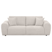 View full detailsA captivating blend of plush curves and bold modern design, this loveseat exudes inviting comfort. A sculptural silhouette with oversized arms and ...