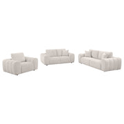 Bold curves and sculptural comfort define this modern sofa set, blending relaxed luxury with artistic form. Oversized arms and deep cushions create an inviting silhouette, while ultra-soft chenille upholstery offers a rich, cozy texture. Built from solid rubberwood and engineered wood, each piece balances visual impact with everyday durability. Perfect for living rooms, lounges, or open-concept interiors that embrace bold style. Key Features: • Sofa set features oversized arms and sculpted shapes for bold, modern comfort • Upholstered in plush burnt orange chenille for cozy texture and soft touch appeal • Rounded profiles and deep cushions create a relaxed, lounge-worthy silhouette • Accent pillows included on select pieces for added comfort and balanced design • Durable frame built from rubberwood, plywood, and engineered wood • Versatile pieces fit perfectly in modern lounges, open layouts, or cozy living rooms
