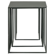 Simplicity of design shows itself to stellar effect in this three-piece industrial nesting table set. Offering versatility in your multi-functional living space, the three tables consolidate underneath the largest to minimize their footprint. Separate the tables as needed, or choose a waterfall configuration to add depth and dimension in your den or living room. Each table features iron construction with a sled-style base and dark gray finish that adds depth to surrounding decor. This compact design is the height of casual style and rugged functionality, perfect for contemporary living. Key Features: • Versatile three-piece industrial nesting table set • Consolidates underneath the largest table to minimize footprint • Iron construction with a sled-style base and dark gray finish • Compact design is the height of casual style and rugged functionality • Perfect for contemporary living spaces