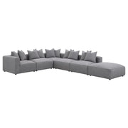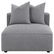 Create your ideal seating arrangement with this contemporary modular sectional sofa, upholstered in a warm and earthy terracotta trillium polyester blend fabric throughout. Tailored tight backs, wide track armrests, and thick cushions, all with self-welt trim edges, invite you to kick back and relax with family and friends. Versatile and modular, shape this sectional sofa to fit your own living room.