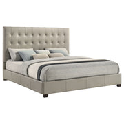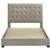 Striking the perfect balance between elegance and edge, this platform bed brings sculptural calm to the modern bedroom. A tall, grid-tufted headboard offers visual rhythm and tailored softness, while smooth, low-profile rails wrap the frame in sleek refinement. Fully upholstered in genuine leather and supported by a built-in slat system, it provides lasting comfort without the need for a foundation—crafted to anchor the room with quiet confidence and bold presence. Key Features: • Queen platform bed with tufted headboard and sleek silhouette for refined structure • Black genuine leather upholstery adds bold texture and crisp tailored elegance • Grid tufted headboard adds structure and refined texture across the full width • Low-profile side rails offer modern framing and uninterrupted lines • Slatted base supports mattress without box spring or added foundation • Crafted from hardwood, engineered wood, foam, and 100% genuine leather