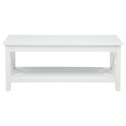 Designed for both movement and ease, this lift top coffee table blends farmhouse charm with modern function. A smooth, rectangular top rises to reveal hidden storage, supported by a sturdy cross-frame base and finished in classic white. Its lower shelf keeps essentials within reach, while the lift-top transforms the surface for casual meals or work-from-home convenience. Crafted from solid pine and engineered wood, it’s the perfect balance of charm and practicality. Key Features: • Lift top coffee table with X-frame sides for modern farmhouse appeal and support • White painted finish adds a clean, fresh look to casual or coastal living rooms • Lift-top design reveals hidden storage for remotes, books, or everyday items • Surface extends upward to 27-inch for flexible use as a writing desk or dining tray • Crafted from solid pine and engineered wood for durable structure and stability • Lower shelf offers open display space for baskets, décor, or magazines