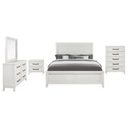 View full detailsEmbrace the fresh, contemporary style of a four-piece bedroom set. A distressed white finish highlights wood grain texture, while clean lines defin...