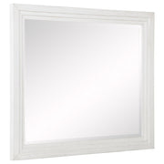 Introduce fresh style and inviting texture with a modern six-drawer dresser and framed mirror. It shows off a distressed white finish over wood gra...