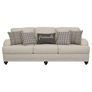 View full detailsFarmhouse inspiration delivers a fresh, stylish look to a transitional space with this exceptional sofa. With tailored English arms and turned legs...