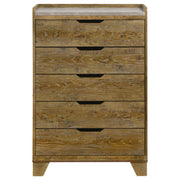 View full detailsRustic charm meets modern refinement in this five-drawer chest of drawers, where natural textures and contemporary lines come together in perfect b...