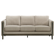 View full detailsRooted in clean lines and modern comfort, this upholstered sofa offers a grounded yet welcoming presence. Its engineered wood frame in a rich coffe...