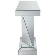 This mirrored console table features a sleek rectangular design with a bold, geometric base. The triangular inlay is adorned with acrylic crystals, enhancing its modern appeal. Made with mirrored surfaces, the console offers a sophisticated look that reflects light beautifully, adding elegance to any room. Crafted with durable materials, it provides a sturdy foundation while its clean lines create an eye-catching focal point in your home. Key Features: • Mirrored console table with a bold geometric design and acrylic crystal inlay • Triangular acrylic crystal inlay adds a touch of sparkle and sophistication • Crafted with mirrored surfaces that reflect light for an elegant, modern look • Solid base construction ensures stability and long-lasting durability • Sleek rectangular tabletop provides ample space for decorative items • Ideal for use in hallways, living rooms, or entryways as a statement piece