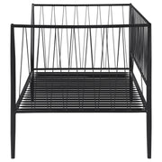 This transitional-style metal daybed combines sleek aesthetics with durable functionality, making it ideal for guest rooms or compact spaces. The design features slim, vertical metal slats with an angled backrest for a subtle modern flair. Welded metal construction ensures strength and stability, while the powder-coated matte black finish resists wear and adds sophistication. The integrated metal slatted platform provides dependable mattress support without requiring a box spring, emphasizing its minimalist appeal. Key Features: • Transitional-style daybed with angled backrest and slim, vertical slats for added visual interest • Welded metal construction provides sturdy support and reliable durability • Matte black powder-coated finish offers modern sophistication and long-lasting wear resistance • Slatted metal platform eliminates the need for a box spring, ensuring mattress ventilation • Ideal for small spaces with its sleek profile and multifunctional design • Balances minimalist aesthetics with practical, space-saving functionality