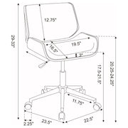 Stay true to a classic retro look. Delivering exceptional comfort, this office chair is a perfect blend of mid-century and modern styling. Tasteful elegance follows a clean, low-profile silhouette with a curved, padded seat and a gently curved seat back. Enjoy a lush palette with ecru leatherette upholstery and walnut and chrome trim. Adjustable seat positions and caster wheels add to its utility with custom seating and portability. Key Features: • Enjoy a classic retro look with a clean, low-profile silhouette, curved, padded seat, and gently curved seat back in ecru leatherette upholstery and walnut and chrome trim • Delivering exceptional comfort, adjustable seat positions and caster wheels provide custom seating and portability • Tasteful elegance follows a perfect blend of mid-century and modern styling • Enjoy a lush palette with ecru leatherette upholstery and walnut and chrome trim • Adjustable seat positions and caster wheels add to its utility with custom seating and portability
