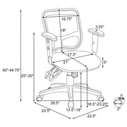 Work productively in exceptional comfort. A home or business office benefits from ergonomically upgraded seating, and this office chair fills the void. Stylish mesh on its seat back offers breathability to avoid moisture and mold. Sit comfortably on a molded seat and take advantage of multiple adjustability features. A spoke base with caster wheels ensures optimal mobility throughout the work day. Key Features: • Ergonomically upgraded seating for exceptional comfort • Breathable mesh seat back to avoid moisture and mold • Molded seat for comfort and multiple adjustability features • Spoke base with caster wheels for optimal mobility • Stylish black design to fit any home or business office
