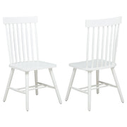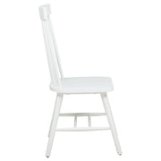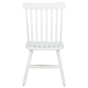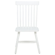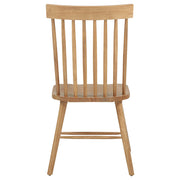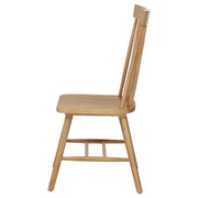 Classic and casual with a fresh farmhouse flair, this Windsor-style side chair features a high spindle back and gently contoured seat for timeless comfort. The clean silhouette is crafted from solid rubberwood with a rich wood veneer that enhances its natural grain. Angled legs with double stretchers offer reliable support and charm. Ideal for everyday dining, breakfast nooks, or cozy kitchen spaces. Key Features: • Windsor-style side chair in light ash finish offers timeless form with a farmhouse-inspired silhouette • Dining chair in light ash includes a tall spindle back and gently curved seat for classic comfort • Windsor backrest design promotes airy support and a traditional yet casual dining aesthetic • Contoured seat enhances comfort while angled legs provide a balanced and grounded profile • Double side stretchers deliver extra durability and everyday strength for long-term use • Crafted from solid rubberwood and finished in wood veneer for warmth, charm, and resilience