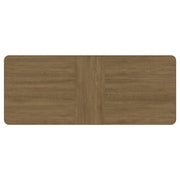 This dining table blends modern refinement with functional design, featuring a trestle base with a metal stretcher bar that adds a contemporary industrial touch. The rounded corners soften the clean lines of the rectangular tabletop, creating a welcoming aesthetic. A removable 18-inch leaf extends the seating capacity, while smooth equalizing metal cable glides ensure effortless, single-person operation. Crafted from solid rubberwood, white ash veneer, and metal, this table offers durability and style for any dining space. Key Features: • Dining table with rounded corners and a sleek trestle base in a sand wash finish • Metal trestle bar in antique brass finish adds visual contrast and reinforces structural stability • Removable 18-inch leaf provides flexible seating for larger gatherings • Smooth equalizing metal cable glides allow simple, single-person table extension • Crafted from solid rubberwood, white ash veneer, and metal for durability • Finish highlights natural wood grain for a rustic-modern aesthetic