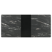 The luxurious look of faux marble creates a glam sensibility for a modern dining table. The black marble look of the tabletop complements a sleek base with fin-style legs and a recessed apron. The table includes a self-storing leaf for easy expansion to accommodate guests or the family. Its black base finish is crisp and classic, offering timeless elegance that never goes out of style. It's the perfect way to bring fresh, modern energy to your dining room. Key Features: • Stylish and chic, a modern dining table features fin-style legs for a rich look • Faux marble finish tabletop creates a sense of luxury perfect for a dedicated dining room • Black finish base and leaf create drama and depth, offering richness and character in any setting • Edge of the table is beveled to create a stylish sense of dimension and sleek style • Table includes a self-storing leaf for easy expansion to accommodate guests