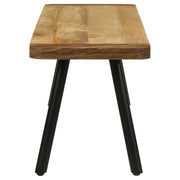 Experience rustic charm with our eco-friendly dining bench, expertly crafted from mango and sheesham wood. The mixed-material top adds a unique and captivating look, showcasing the beauty of natural wood grains. Complementing the rustic aesthetic, the black iron tapered legs provide a mid-century modern touch, blending styles seamlessly. Enhance your dining area with this exquisite bench that combines sustainability, craftsmanship, and a distinct design for a truly remarkable seating option. Key Features: • Experience rustic charm with our eco-friendly dining bench, expertly crafted from mango and sheesham wood • The mixed-material top adds a unique and captivating look, showcasing the beauty of natural wood grains • Complementing the rustic aesthetic, the black iron tapered legs provide a mid-century modern touch, blending styles seamlessly • Enhance your dining area with this exquisite bench that combines sustainability, craftsmanship, and a distinct design • Enjoy a truly remarkable seating option with this one-of-a-kind bench