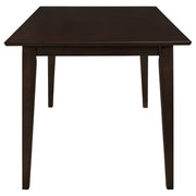 Elevate your dining space with this sleek 59-inch rectangular dining table, expertly crafted with hardwood, engineered wood, and okume veneer. Featuring a stunning cappuccino finish, this table combines durability and modern elegance, making it perfect for both family meals and formal gatherings. Its compact size offers versatility for various room layouts, while the sturdy construction ensures years of use. A must-have centerpiece for contemporary dining rooms. Key Features: • 59-inch rectangular dining table with modern appeal • Hardwood, engineered wood, and okume veneer construction • Rich cappuccino finish for a sophisticated look • Compact design fits a variety of dining spaces • Durable craftsmanship ensures long-lasting quality