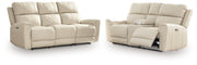 Focus on function. This practical power reclining seating package balances contemporary character and irresistible comfort. Its affordable, expertly matched leather and faux leather upholstery keeps your style up to speed without breaking the bank. Reclining at the touch of a button, this group plays well in relaxed, luxe seating areas made for quality time.