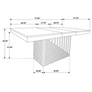 Imagine hosting family gatherings at the holidays and dining with friends around this charming, contemporary seven-piece dining set. Its modern look is established with a robust pedestal base complete with a decorative slat pattern. Its deep, rich mango oak wood grain finish is a lovely complement in casual and more formal spaces, and the table is equipped with an expansion leaf perfect for guests. Chairs are included, offering a padded seat with light brown upholstery, and a slatted back with a gentle curve for extra support and comfort. The set delivers a cohesive, artistic look and feel to center your dining space with both energy and soothing, welcoming ambiance.