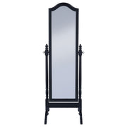 With a delicate silhouette, this cheval mirror adds a delightful touch. Bring character to a traditional space with a swivel mirror offering a full view. Ornate tailoring yields a tasteful shape that conforms to vintage French cottage styling. This mirror is perfect for a master bedroom or dressing space. Select the perfect finish to complete your custom look. Key Features: • Traditional cheval standing mirror has an antique feel • Frame features arched top and stand with turned posts • Clear mirror surface • Available in white, black, and red brown • Rubberwood construction