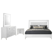 View full detailsCrisp white high gloss and sculptural textures define this modern bedroom set, blending sleek surfaces with dimensional details. Geometric drawer f...