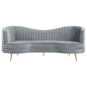 View full detailsWith an Art Deco flair, this retro-inspired sofa offers a striking curvy silhouette with a bold colored fabric. Wrapped entirely in a bright blue v...
