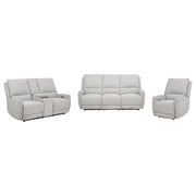 Designed for those who seek comfort without compromise, this power reclining sofa set transforms any space into a soothing sanctuary. Draped in dove grey chenille, each piece features sculpted seating, generously padded cushions, and smooth power-operated recline at the touch of a button. Built-in anti-pinch safety mechanisms pause movement upon contact, offering both luxury and protection. It's a collection that brings ease, elegance, and confidence to every seat. Key Features: • Power reclining sofa set with plush cushions and sculpted seats for cozy modern lounging • Dove grey chenille upholstery provides soft texture and a clean neutral appearance • Each seat features push-button recline for smooth, effortless comfort adjustment • Supportive backrests and foam padding ensure full-body relaxation in every position • Anti-pinch safety function stops motion if resistance is detected mid-recline • Built from pine, plywood, and metal to deliver long-lasting strength across the set