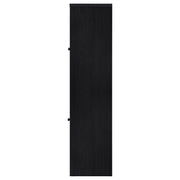 Elevate your space with a media tower that blends quiet elegance and thoughtful design. Wrapped in a bold black finish, this two-door cabinet reveals a rich interior contrast and graceful utility. Framed glass doors showcase your favorite pieces above, while a hidden drawer below offers a secret haven for everyday essentials. Whether you're curating a display or storing away the everyday, this tall, slender silhouette adds a refined presence to any corner it inhabits. Key Features: • Two-door media tower with black frame and warm wood-look interior finish • Upper cabinet includes two adjustable shelves for versatile display • Lower cabinet includes one drawer for concealed storage of small items • Clear framed glass doors enhance visibility while protecting contents • Gunmetal hardware adds subtle industrial contrast to the modern silhouette • Constructed from engineered wood, melamine veneer, and tempered glass for durability
