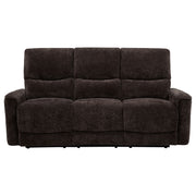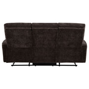 Softly tailored and built for comfort, this reclining sofa invites everyday relaxation with ease. Deep cushions and plush chenille upholstery wrap you in warmth, while channel tufting along the back enhances support and flow. Smooth manual recliners extend at your fingertips, offering personalized comfort from seat to seat. Framed in durable wood and metal, it brings a perfect balance of softness, structure, and restorative ease to any living room. Key Features: • Reclining sofa with manual levers and deep cushions for laid-back living room comfort • Dark brown chenille upholstery adds soft texture and cozy warmth to the frame • Channel-tufted backrests offer targeted support and gentle contouring • Padded armrests provide comfort from every angle while lounging or reclining • Crafted from fabric, metal, plywood, and foam for durable everyday relaxation • Perfect for casual living rooms seeking cozy function with easygoing style