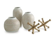 Elevate your decor with this striking accessory set. Its sleek black vases, adorned with delicate goldtone accents, are perfect for displaying your favorite faux blooms or standing alone as minimalist statements. They're paired with bold geometric sculptures, creating a dynamic and sophisticated look for modern spaces.