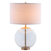 Illuminate your haven with this captivating bedside table lamp, a blend of ambient lighting and modern elegance. Its drum shade casts a gentle, warm glow, while the clear glass base reflects light with a touch of sophistication. Perfect for contemporary spaces, this nightstand lamp stands as an accent piece that enhances any decor. Whether gracing your bedroom or living area, this lamp creates a serene atmosphere, inviting you to unwind in style and comfort. Key Features: • Table lamp with a drum shade for soft and stylish illumination • Rich brass finish for a warm, modern, and elegant aesthetic • Clear glass base design adds a sleek and contemporary touch to any space • Provides ambient lighting ideal for bedrooms, living rooms, or cozy nooks • Crafted from heavy gauge metal with a glass base for lasting durability • Features an easy-to-use switch for convenient and seamless operation