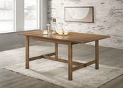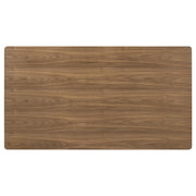 Enjoy the trestle base and inviting style of a modern rectangular dining table. Designed for casual appeal in your kitchen or dining room, it features a natural walnut finish over walnut veneer. The table is a warm and inviting centerpiece for your eat-in kitchen or breakfast nook, complete with rounded corners and a true square edge. Round legs provide excellent support and a hint of dimensionality. Flowers from the garden or seasonal decor make a striking centerpiece for this charming table design. Key Features: • Casual style makes this modern rectangular dining table the perfect choice for a family kitchen • A walnut finish highlights the wood grain details of the table and adds richness • Tabletop has a true square edge profile with rounded corners to complement the legs • Round post legs and a classic trestle base bring casual character and timeless style • Crafted with walnut veneer paired with rubberwood and engineered wood for durability