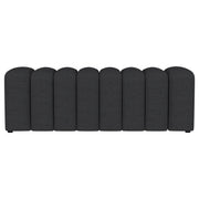 Introduce glam texture and dimension with a decorative upholstered bench. This modern creation features an undulating silhouette without arms or a back, offering sleek style and seating. Perfect for a sophisticated foyer or living room, it adds a pop of color and rich dimensionality with subtle variation in textured fabric. It makes a chic replacement for a coffee table in a linear sitting area, complete with foam cushioning that's firm enough to host a serving tray. Minimal feet create a seamless look and feel in any setting. Key Features: • Exquisite design sets a modern upholstery bench in a class by itself • Backless profile is chic and low-key, offering seating in any space • Undulating silhouette is bold and glamorous, setting the tone in your foyer, living area, or bedroom • Dimensional upholstery is stylish and refined, offering a lovely complement to surrounding decor • Bench features small round legs that add a touch of lift and a seamless look