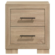This two-drawer nightstand combines thoughtful utility with clean-lined modern design. Its boxy frame is finished in a soft light oak tone, accented by antique nickel hardware. Crafted from engineered wood with a scratch-resistant laminate veneer, it ensures daily durability. English dovetail drawers glide smoothly on 35mm metal extension glides, while hidden casters offer easy repositioning without compromising the nightstand’s clean base profile. Key Features: • Two-drawer nightstand in light oak finish with a compact and squared modern profile • Antique nickel drawer pulls offer sleek contrast to the warm neutral wood tone • English dovetail drawer boxes provide added structural integrity and durability • Drawers glide on 35mm full-extension metal glides for smooth daily functionality • Engineered wood frame with a durable and scratch-resistant laminate veneer finish • Hidden casters at the base allow for easy repositioning without visual distraction