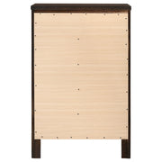 View full detailsOrganize your space with this five-drawer chest, offering clean lines and timeless appeal. The rich cappuccino finish enhances the warmth of its wo...