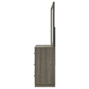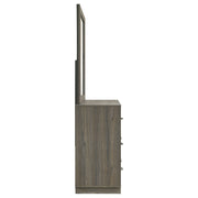 Elevate your bedroom decor with this sophisticated dresser and mirror set, blending contemporary style with functional design. The nine-drawer dresser offers ample storage, featuring a hidden jewelry drawer for added convenience, and is adorned with antique nickel handles for a touch of vintage charm. The dresser is complemented by a matching mirror, framed in a sleek two-tone melamine that blends natural wood tones for a modern look. Both pieces are crafted from durable melamine, particle board, and MDF, ensuring lasting quality. This set not only enhances the aesthetic of your bedroom but also provides practical storage solutions for a well-organized space. Key Features: • Dresser and mirror set with a contemporary two-tone melamine design • Nine-drawer dresser includes a hidden jewelry drawer for discreet storage • Antique nickel handles add vintage charm and elegance • Mirror framed in a sleek two-tone melamine that complements the dresser • Durable construction using melamine and engineered wood for lasting quality