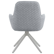 View full detailsBlending mid-century modern design with contemporary comfort, this swivel dining armchair offers both style and function. Upholstered in light grey...