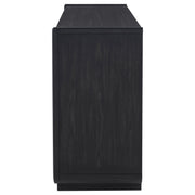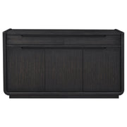 With a presence both grounded and graceful, this sideboard offers quiet beauty and purposeful design. Draped in a burnished black finish, its soft curves and minimalist lines open to thoughtful storage, two felt-lined drawers for treasured linens and flatware, and three softly closing doors revealing fixed shelves behind. Each detail, from the whisper-quiet glides to the dust panel below, is a study in balance, offering elegance that lingers long after the meal is done. Key Features: • Dining sideboard in burnished black with sculpted edges and clean, recessed pulls • Two felt-lined drawers with soft-closing ball bearing glides for refined storage • Three soft-close doors conceal fixed shelves ideal for serving pieces and dishware • Dust panel at the base ensures fully enclosed, protected storage space • Crafted from ash veneer, rubberwood, engineered wood, and plywood • Bold presence with understated lines designed for modern dining settings